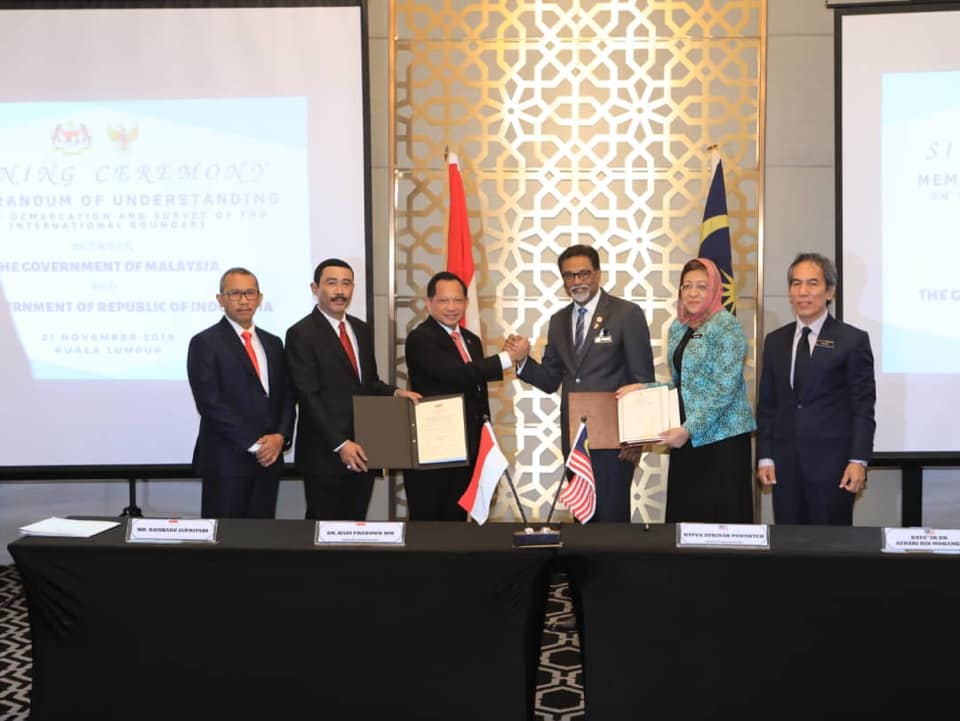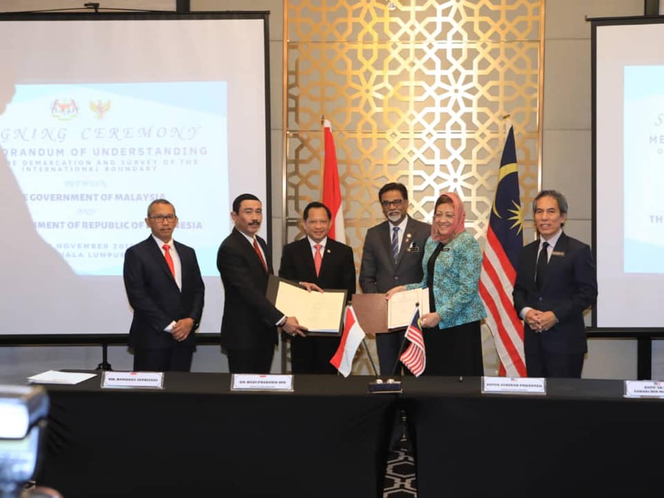 A milestone on boundary demarcation between Malaysia - Indonesia has been reached today with the signing of Memorandum of Understanding (MoU) on the Demarcation and Survey of the International Boundary between Malaysia (Sabah & Sarawak) and Indonesia (Kalimantan Utara & Kalimantan Barat).